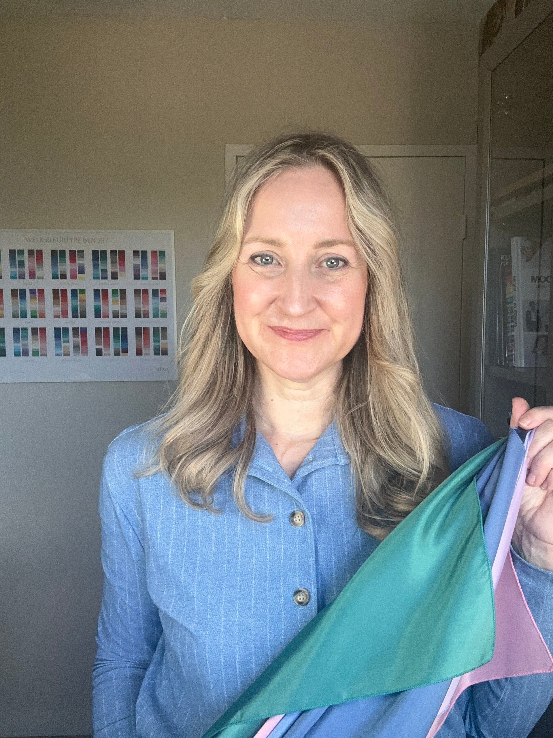 Toch merkte ik dat ik verdieping miste: waarom staat de ene kleur zoveel mooier dan de andere? Die nieuwsgierigheid bracht mij bij de opleiding tot kleurstylist, waar ik ontdekte wat de juiste kleuren doen voor je uitstraling.